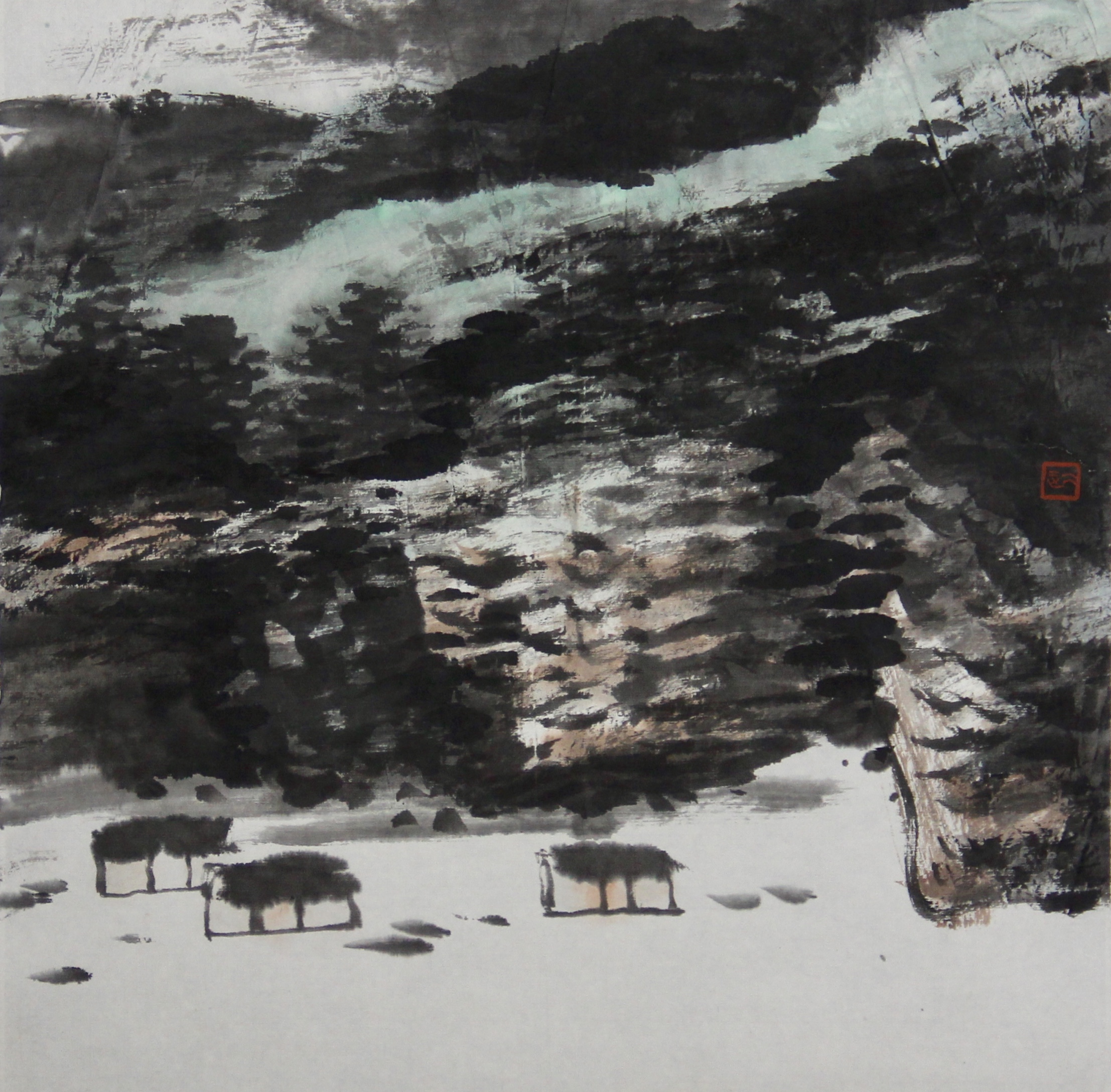 这次在学术方面的一大收获,是曹先生用阴阳之道来解释他的构图。在西方油画中,我们说颜色的明暗,那么水墨画中,我们讲究的是阴阳。山水画中有山有水,山与水一动一静谓阴阳。山水画蕴含了道家思想,山水相合便是无极,世间进退,与山水同步。