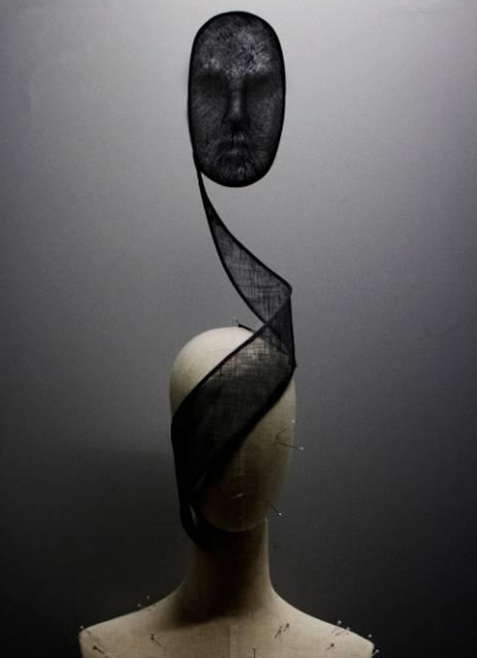 还有萨顶顶的这张人面帽饰,隋宜达采用了极轻盈的材质,延伸出无尽的缥缈、虚空,复刻的人脸浮夸中透着丝丝诡异,让人过目不忘。