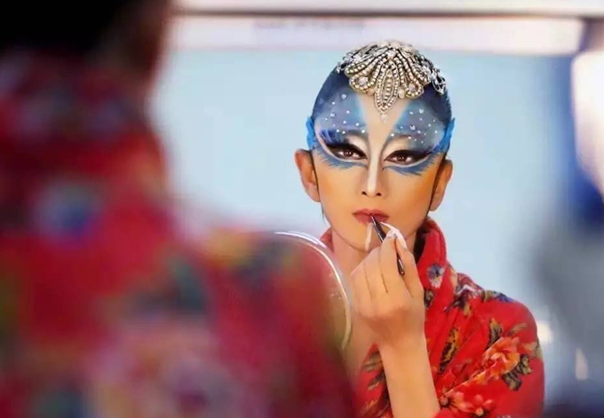 乐声响起,灯光紧随,杨丽萍戴着隋宜达设计的帽饰在《孔雀之冬》的舞台上翩翩起舞,包裹型的雪花孔雀羽帽饰和孔雀纱裙相互辉映,每一帧画面都美得令人窒息。