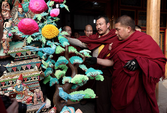 一年一度的酥油花创作,是艺僧们展示才情和技艺、体现自身价值的极好机遇。却西洛桑、索南仁杰等一批油塑大师就是凭着自己优秀的作品而永载塔尔寺史册的,这也是每一个艺僧的崇高愿望。