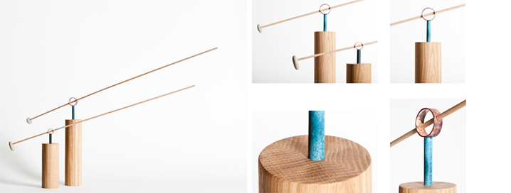 精致的碎片由氧化铜制成,花瓶还有一个浅银盘,用于盛水,瓶子和碗是纯装饰性的,但烛台和花瓶可以如图所示使用。少即是多,越是极简到深处,越展示事物的本质特征。