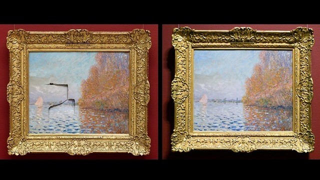 这幅爱尔兰国家画廊唯一的莫奈作品名为《阿让伊特盆地塞纳河上的帆船》,2012年被一名前来参观的子出拳打中,画布严重破损,画面近四分之一遭到破坏,大量油彩脱落。
