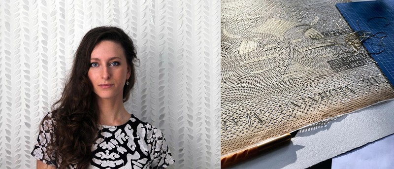 加拿大艺术家 Myriam Dion 为此构思了一种新的艺术创作形式,通过对报纸上的图文进行再创作,以全新形式展现报道内容,而她的主要工具是一把「X-Acto」刻刀,战争期间医生们就是用这中刀片为士兵们进行手术。
