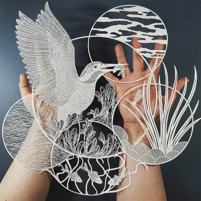 爱沙尼亚艺术家Eiko Ojala 通过小心谨慎地排列好剪纸和阴影的层次,来将纵深和肌理的奇妙感觉带进他的作品里,且Eiko Ojala的数字技术的运用也突破了传统纸艺静态呈现的限制, 探索了剪纸纸艺风格的新可能。