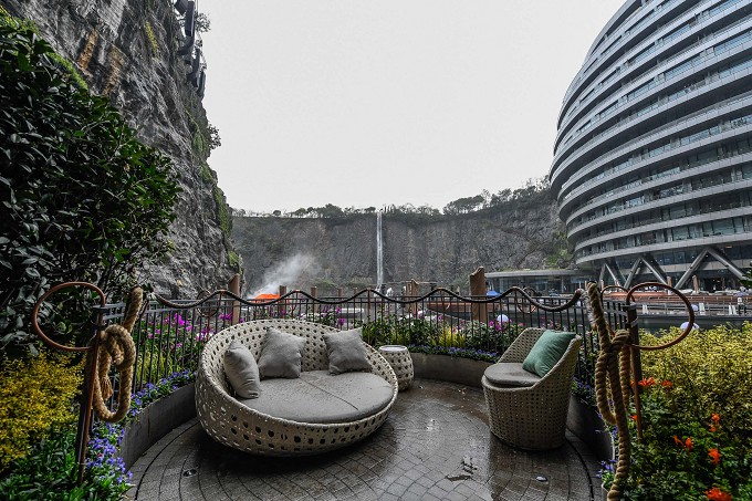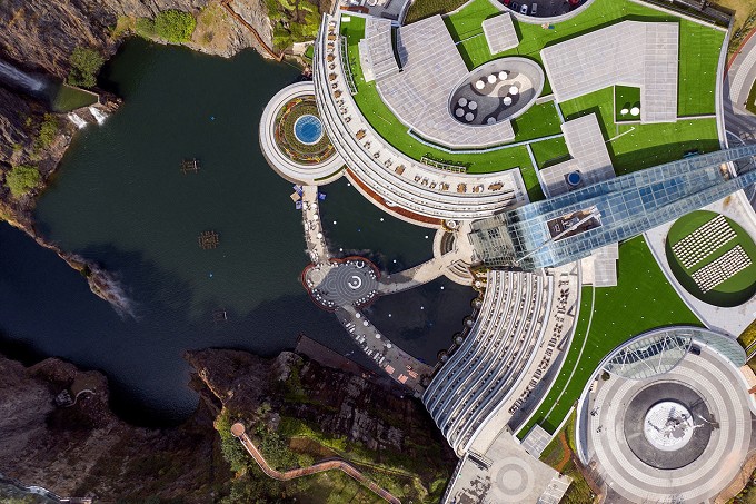 这是世界海拔最低的五星级酒店,历时12年建造,下探地表88米,依附深坑崖壁而建。这项「反教科书」式的超级工程克服了64 项技术难题,其中完成专利41项,已授权30项,创造了世界建筑史上的奇迹。