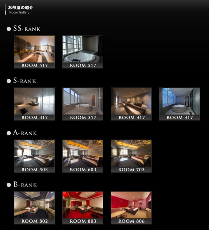 Hotel Beni 的房型竟然多达12种!酒店的网站上将其分为从A到J的不同等级,再往上甚至还有S和SS级别的房型!