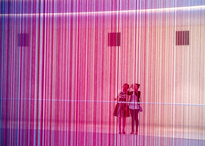 也是同年秋天,他在明尼苏达州布鲁明顿市美国购物中心(Mall of America)进行的室内纱线装置创作,再一次刷新了大众对色彩的定义。