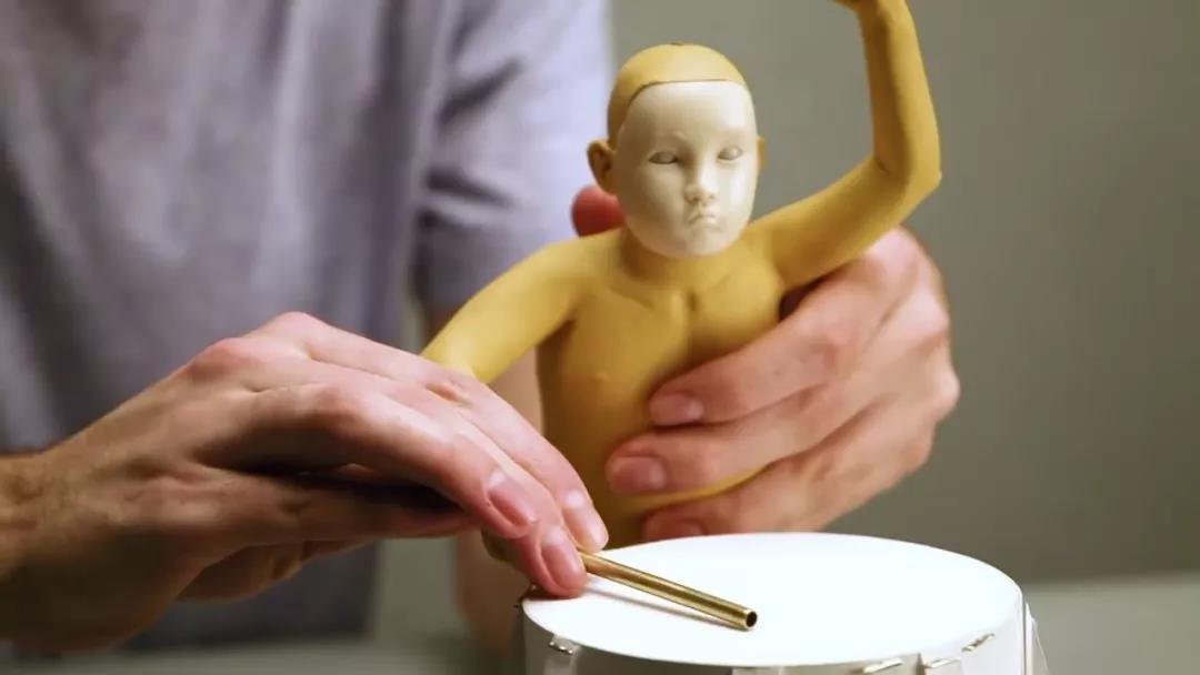 上色之后,就可以开始嵌入头发了。动画师需要用针逐一地嵌入每一缕头发,每个脸模的头发都需要被精确地复制,避免穿帮。