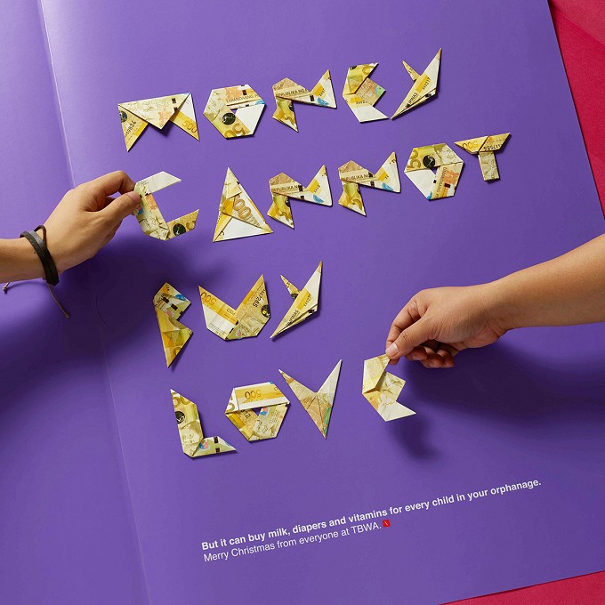 A: 2014年圣诞节我为一座孤儿院制作了大型圣诞节贺卡。考虑到孤儿院在很多地方都需要花钱,于是我将纸币折叠成字母拼成句子,为他们制作了贺卡,既能让孩子们开心,也能够切实帮助到孤儿院。