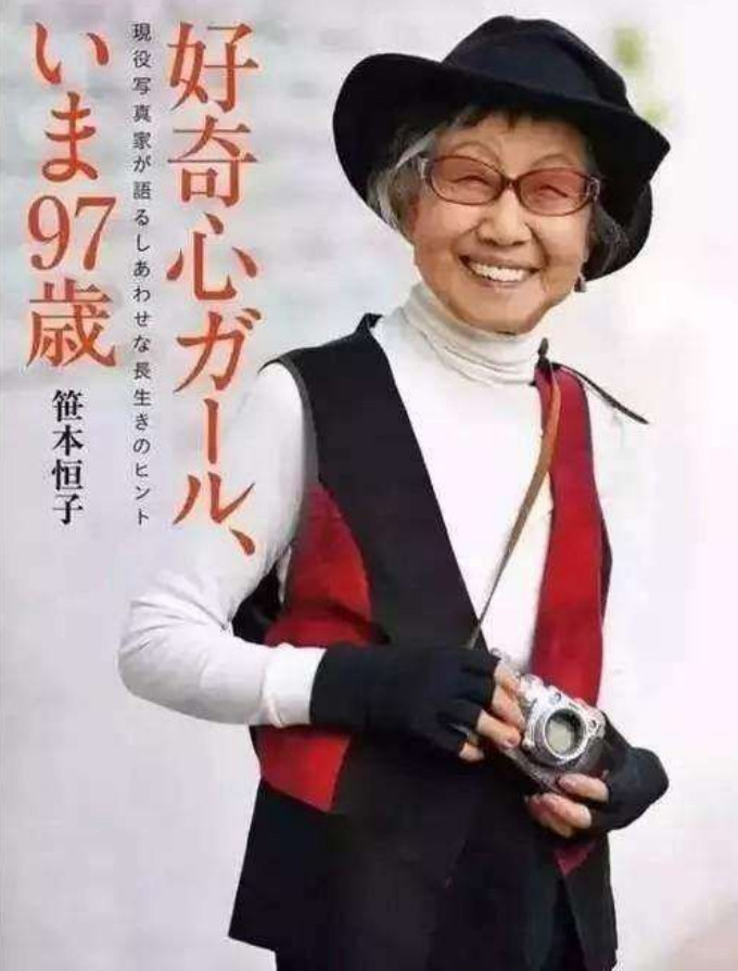 这位叫笹本恒子的日本老人已经104岁了,她曾是日本第一位拿相机拍照的女记者,49岁时由于杂志社受到政治影响相继倒闭,年近半百既失恋又失业的她从未抱怨过命运,而是很快收拾好心情再次出发,用自己那双善于发现美的眼睛开起了服装设计店。在她眼里,奢侈品不是用钱衡量的,而是用心和好的灵感创造出来的。所以在她52岁的时候她又学了鲜花设计,在71岁时重回摄影界,86岁的她再次陷入爱情,96岁摔骨折的她用强大的毅力坚持复健,97岁出自传,101岁的她写自传出书《好奇的女孩,现年101岁》,102岁,获得国际摄影大奖——露西奖,其分量堪称摄影界的奥斯卡。
