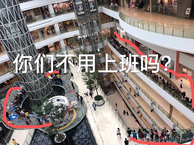 据商场工作人员介绍,从29号刚开业至今,每天早上上班的员工通道,都会被买奶茶的队伍挤满,浩浩荡荡从3楼一直延伸到1楼。30号晚上不到9点,现场已经挂出了「货已售完,停止排队」的标识。