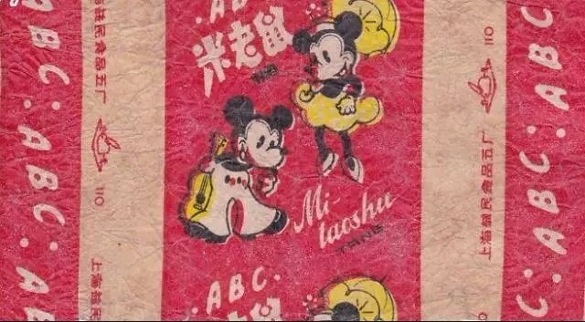 冯伯镛看到当时米老鼠卡通片广受上海儿童欢迎,就设计了红色米老鼠蜡纸包装,并命名为「ABC米老鼠」奶糖。