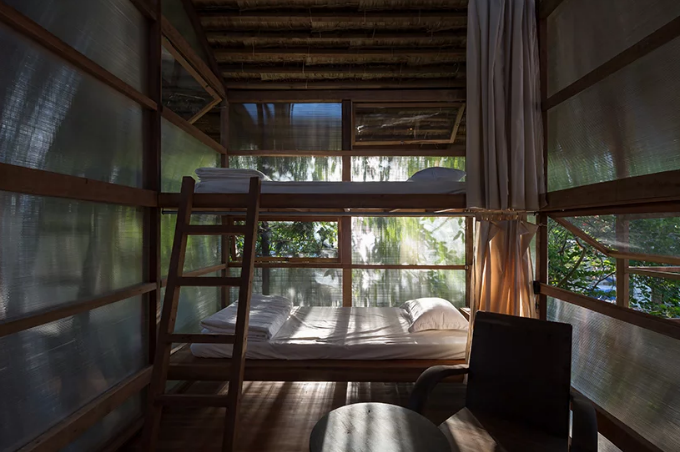 silaa建筑事务所在越南顺化市设计了一个小木屋SAHI W&D,这座小屋被设计成一家民宿,游客可以在宿舍风格的空间度假,这座建筑充斥着原始的自然,旨在“催促”人们多和自然交流。