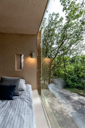 南面和西面的大窗户享有充足的自然光线,并享有周围的全景,而每间小屋的外立面均设有室外淋浴,营造出在森林中沐浴的体验。