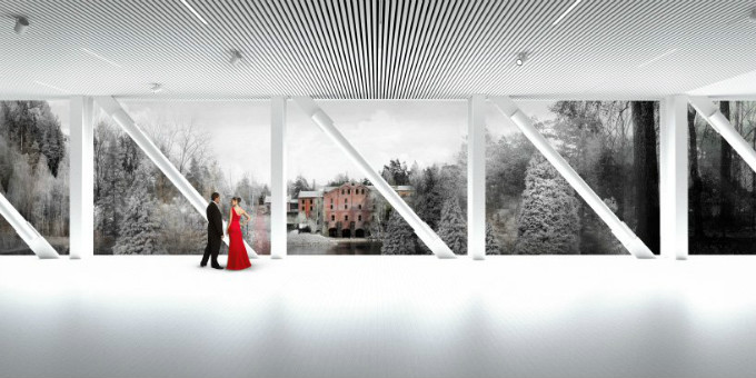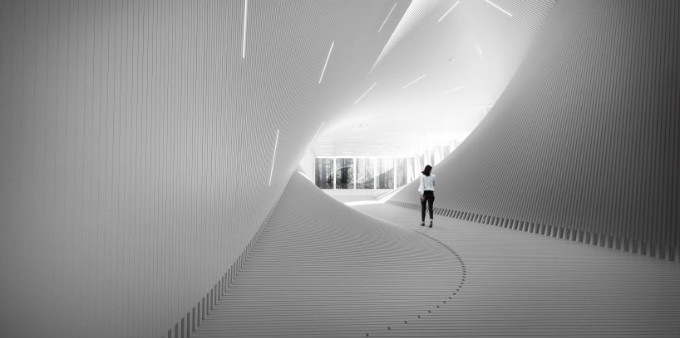 入口从建筑的两端提供。从南向北,游客通过一个引人注目的两层高空间进入,清晰的视线穿过整个建筑进入北入口。相反,来自北部的客人进入一个全景空间,可以看到基地的纸浆厂和周围的景观。bjarke ingels说:“对于有人居住的桥梁,我们无意中发现了我们第一个关于社会基础设施的实验——一个作为桥梁的建筑,或者一个作为基础设施一部分的文化机构。”