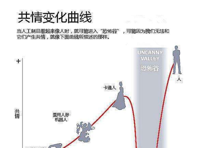恐怖谷理论是一个关于人类对机器人和非人类物体的感觉的假设。它在1969年由日本机器人专家森昌弘提出假设:由于机器人与人类在外表﹑动作上都相当相似,所以人类亦会对机器人产生正面的情感。直至当机器人与人类相像超过95%的时候度,他们的反应便会突然变得极之反感。