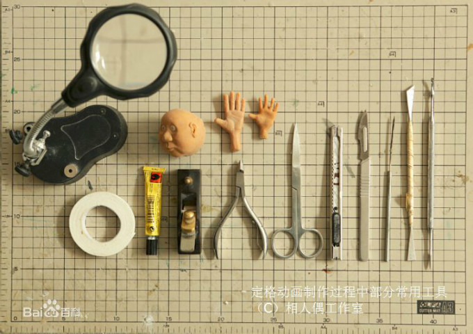 通常所指的定格动画一般都是由黏土偶,木偶或混合材料的角色来演出的,可以是一个人,一个动物,一件东西,当然也可以是一个你臆想出来的一个角色。我们熟悉的黏土、橡胶、硅胶、软陶,以及石膏、树脂黏土等都可以用作制作角色的主要材料;铝线,丙烯,模型漆,雕塑刀等工具也是制作角色过程中的常用材料。