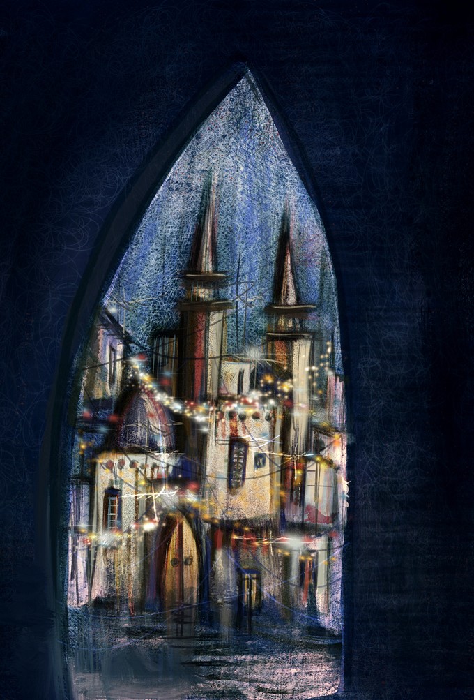 你可能想象不到,Hafez 最初的「作品」其实来自一件巧克力的包装纸。这块巧克力出产自叙利亚,包装纸上印有大马士革旧城的图像,这给了 Hafez 创作的灵感。