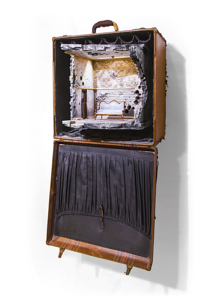 手提箱通常与乘坐飞机的旅行者一同出现,提着手提箱就能实现一场说走就走的旅行。而在 Hafez 的作品中,手提箱成为难民们逃离战争的工具,在那个小小的手提箱中装着的是他们的必需品和维系生命的食粮。
