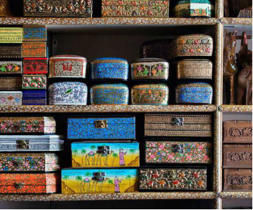 由14世纪来自波斯的穆斯林圣人Mir Sayyid Ali Hamadani带来,主要以纸浆为基础,是一种装饰丰富,色彩艳丽的人工制品。通常以花瓶,碗或杯子,盒子,托盘,灯座和许多其他小物件的形式出现。