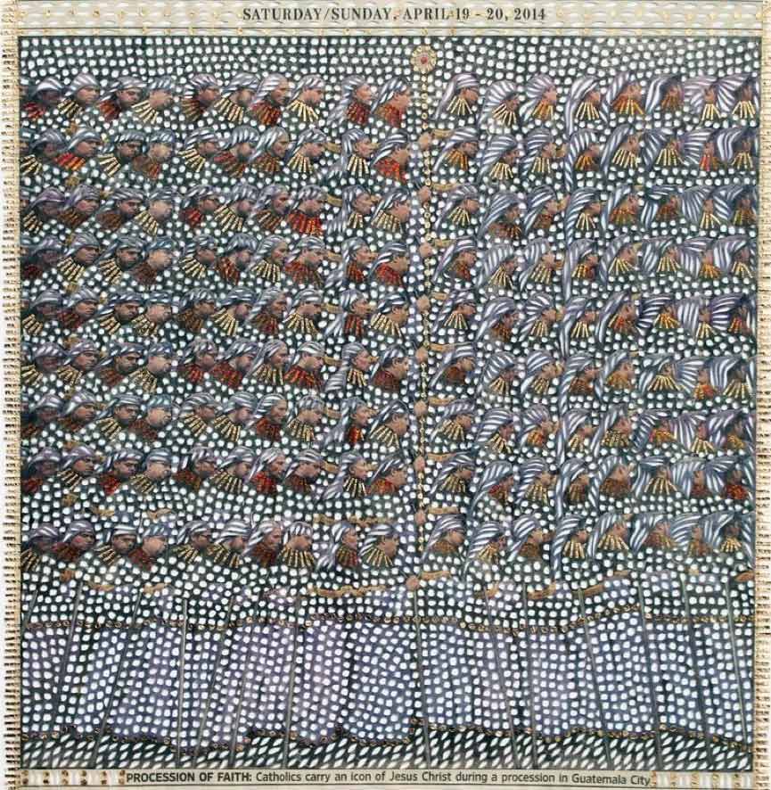 二战结束、追捕火车劫匪、信仰的游行…这些报道了重要历史事件,原本就很珍贵的老报纸,在米里亚姆·迪翁的手下变得更具意义,成为了永恒的艺术品: