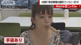 并且,戴上这幅神奇的手套直接拿起水果也能够改变水果的味道,比如说吃香蕉,带上手套的体验者表示,没有戴手套的香蕉就是平时吃的那个味道,但是一旦手套接触到香蕉,在微电流作用下的香蕉,就别有一番风味。