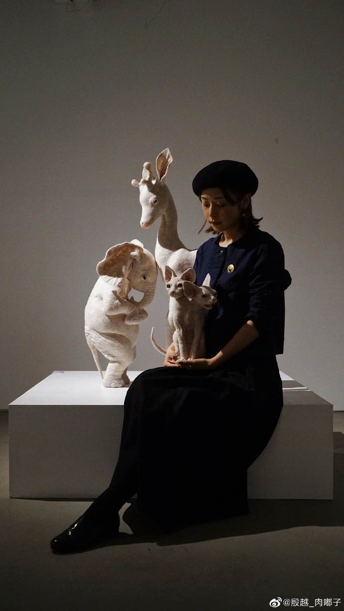 01 在殷越最新参展的作品中,她形容自己将:无助与悲怯;不安和蜕变;安定与平和三种不同的心境分别注入了三件象,猫,鹿毛毡艺术品。她们是面对无可选择的结果时,被迫成长出的坚强。