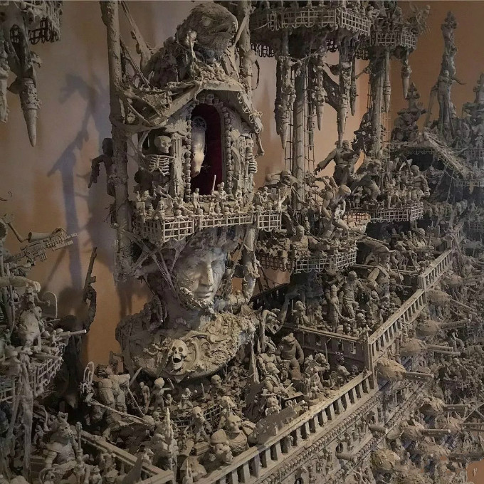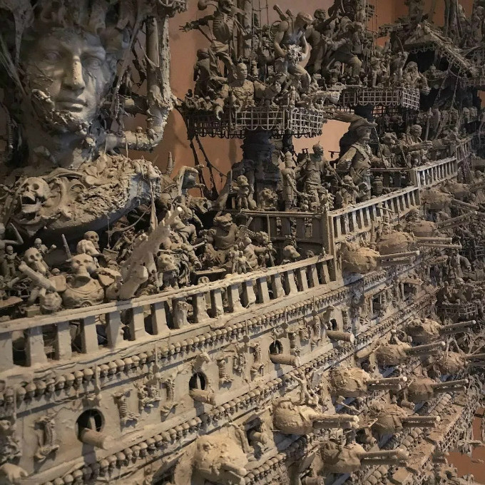 在将近20年的时间里,Stieva一只沉迷于哥特式的作品创作,最令人印象深刻的要数这艘幽灵海盗船了。这艘幽灵海盗船,由上百种奇怪生物组成,就连Stieva自己都觉得,这件作品太“渗人”了,以后不再创作类似主体的作品了。