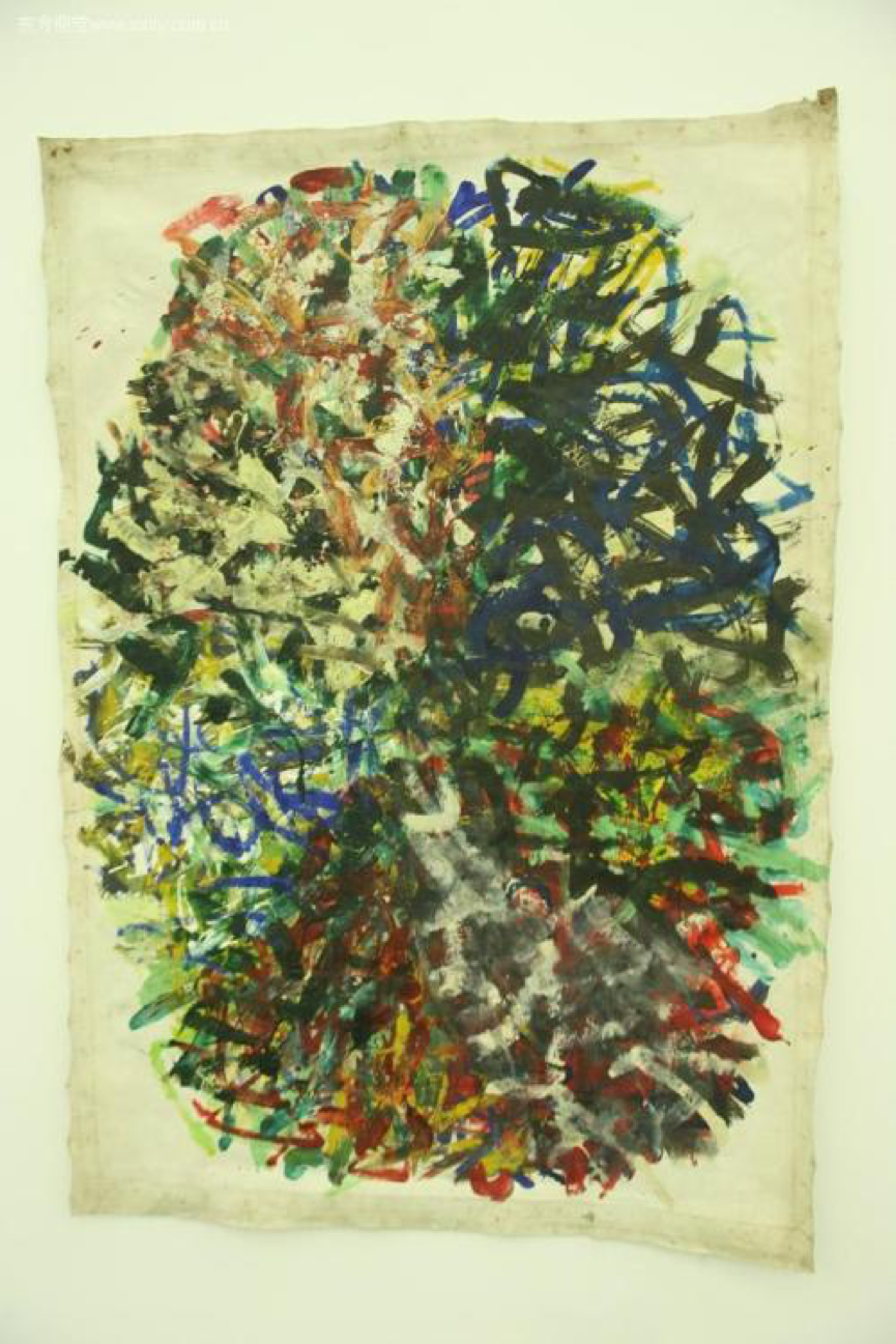 颜料一共有25种,且都不是常规颜料,没有油画水粉,而是油漆、洗笔油,乃至脏水…黄永砯就这样通过一种既有秩序又随机的方式,完成了自己的毕业作品。