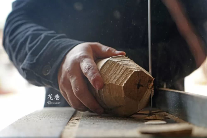 常年的雕刻工作,使傅明筑的双手遍布老茧