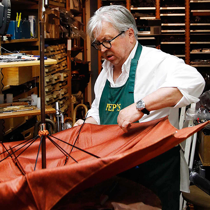 像巴黎、伦敦这样的欧洲城市,下雨是经常的事情,雨伞是生活中必不可少的一件物品,重视程度是非常高的。Pep's从上世纪60年代开始修伞,至今已有50多年的历史。