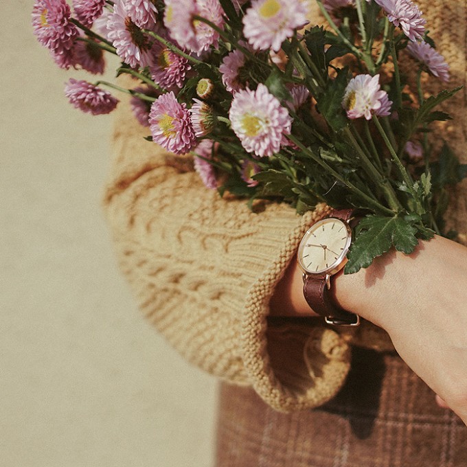 俗话说,细节见气质,或是一束捧花,或是奶茶色的毛衣,又或是这件低调且细腻的木纹腕表。