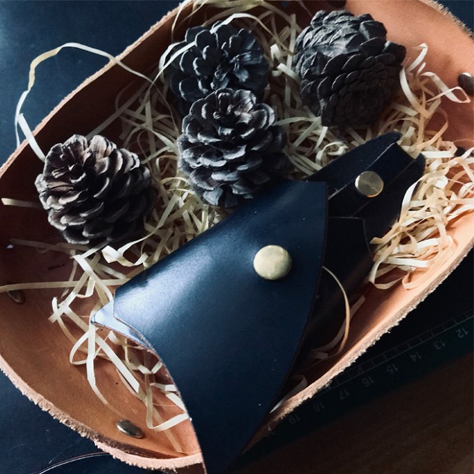为了保持整体性,钥匙环的皮带部分没有额外裁皮加入,而是一体成型,虽然会比较费皮,但是和成品的效果相比相当值得。四合扣经过不断调试确定为现在位置,整体的蝙蝠形状呈现上小下宽的造型,也更稳定美观。