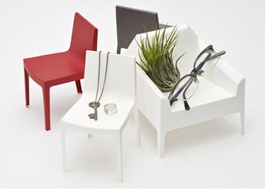 日本设计师Taiji Fujimori设计了一组纸做的椅子和沙发,只有正常家具的五分之一。用于容纳一些小件物品,如钥匙、眼镜或者饰物。适用于家庭或者办公室,也可以在