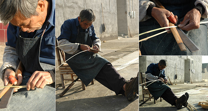竹编工艺包括砍、锯、切、剖、拉 、撬、编、织、削、磨等工序,从锯成竹节,剖成篾片,细分竹丝,到编织成竹编用具,再到后期去毛刺、防霉防虫等, 道道手工操作,平田的竹编产品均由乡村具有几十年经验的老师傅制成(其实除了老师傅,年轻人也不会编织了),慢工 出细活,层层工艺细致扎实。