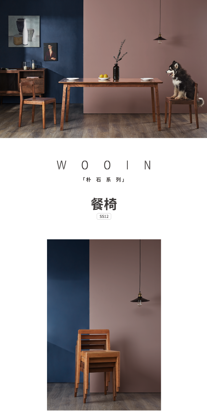 物应「朴石餐椅」黑胡桃樱桃木小户型可堆叠加餐桌椅全实木办公椅