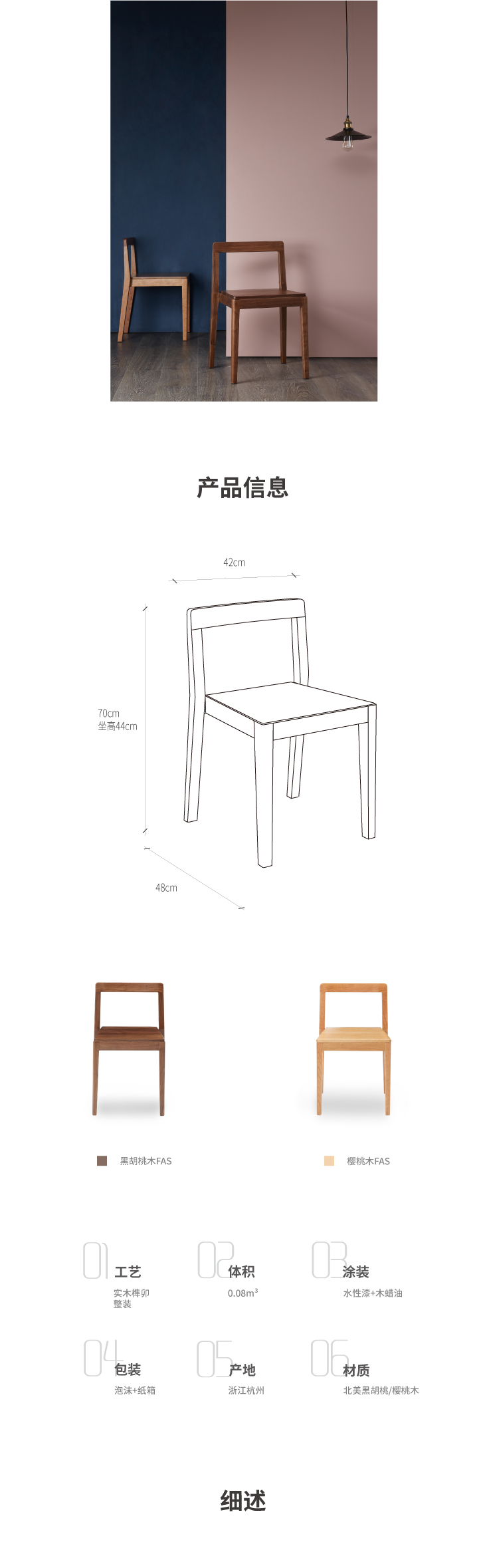 物应「朴石餐椅」黑胡桃樱桃木小户型可堆叠加餐桌椅全实木办公椅