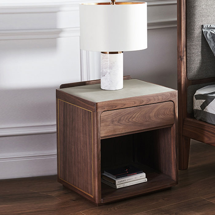 物应「细砾床头柜」实木简约现代卧室真皮床边柜收纳储物柜小柜子 0人收藏