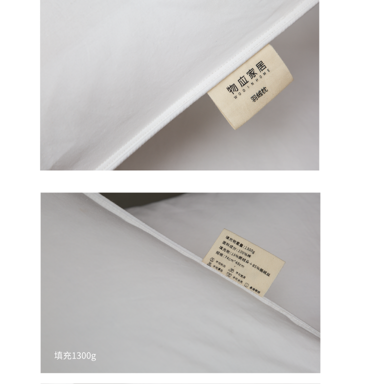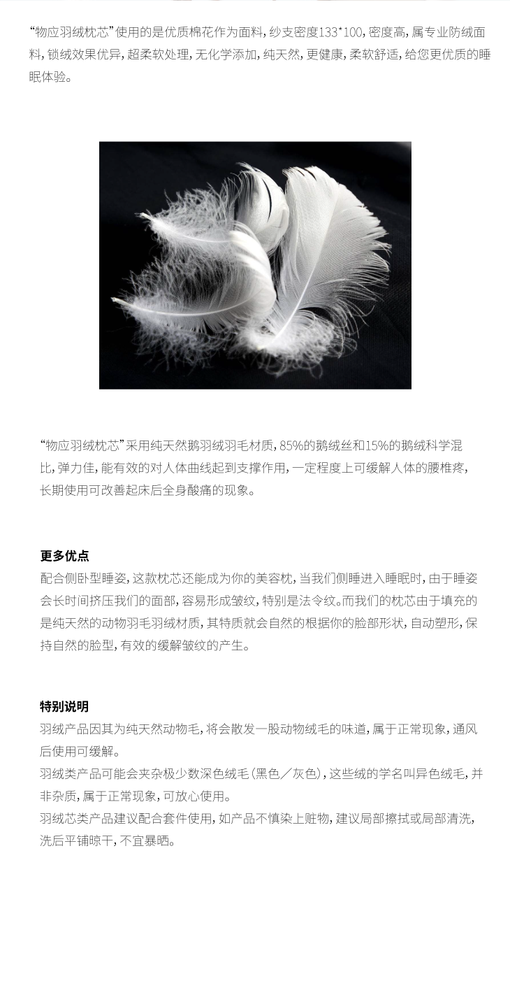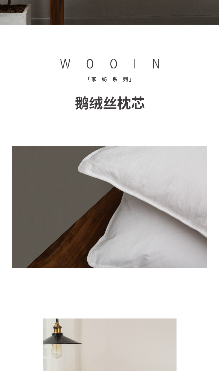 物应「鹅绒丝枕芯」羽绒白色枕芯全棉48*74cm舒适护颈枕头健康枕