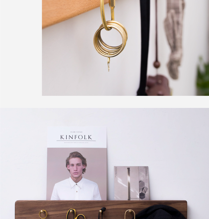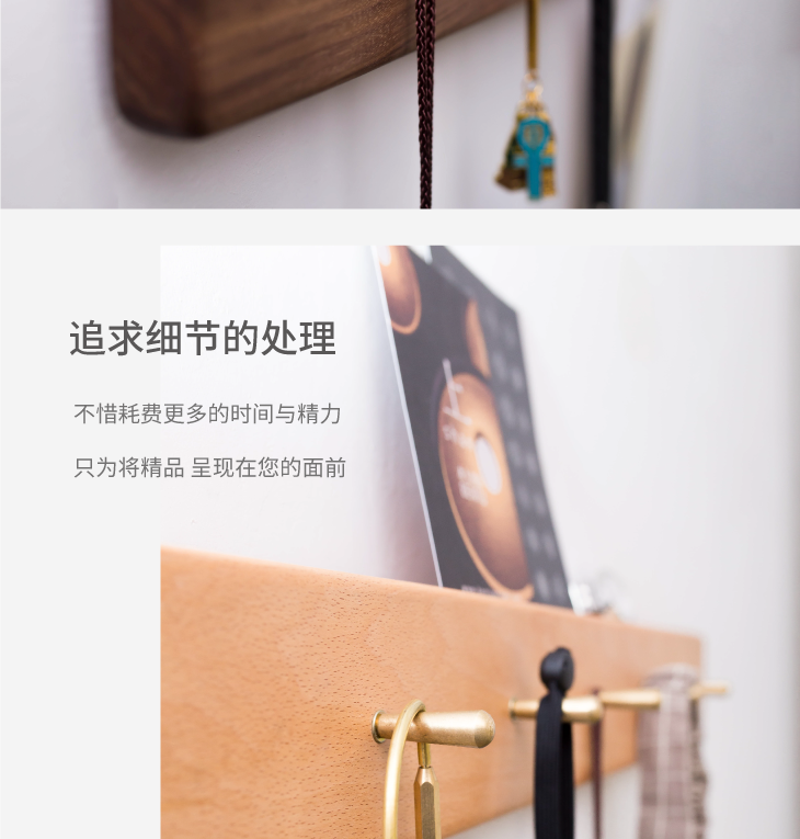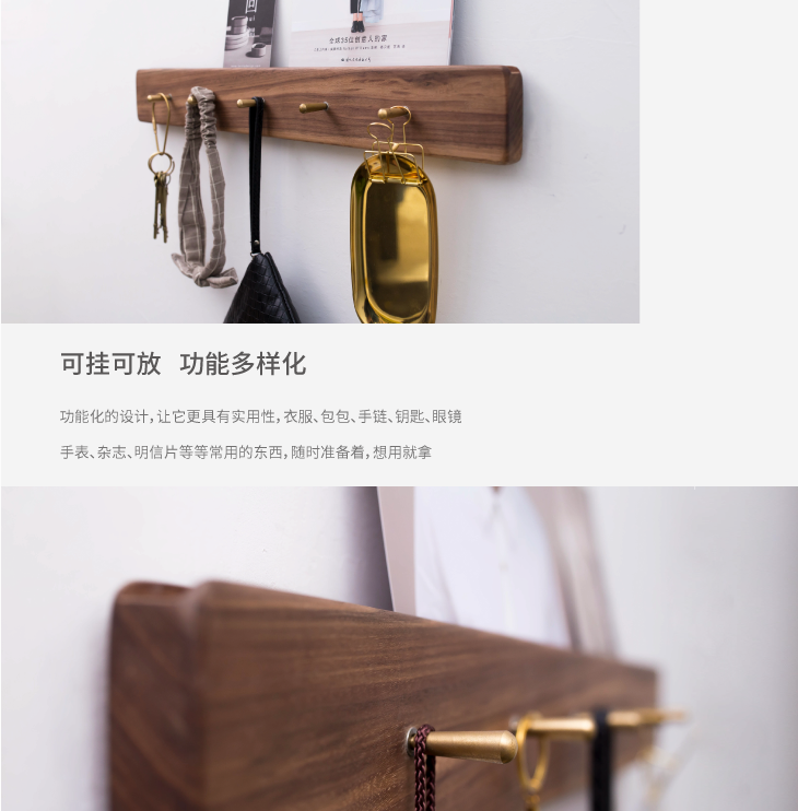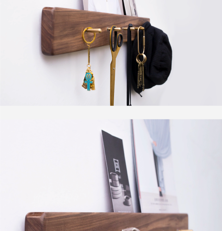 物应「一字挂钩」黑胡桃榉木黄铜挂衣钩实木衣帽架壁挂多功能隔板
