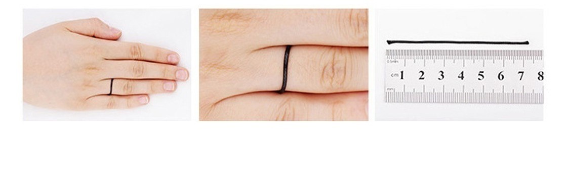 1、用准备好的细线测量佩戴戒指的手指位置(一般为手指根部),勿侧量关节位置,测量时可以把线稍稍拉紧一些;然后在绕一圈重叠处用记号笔标记;