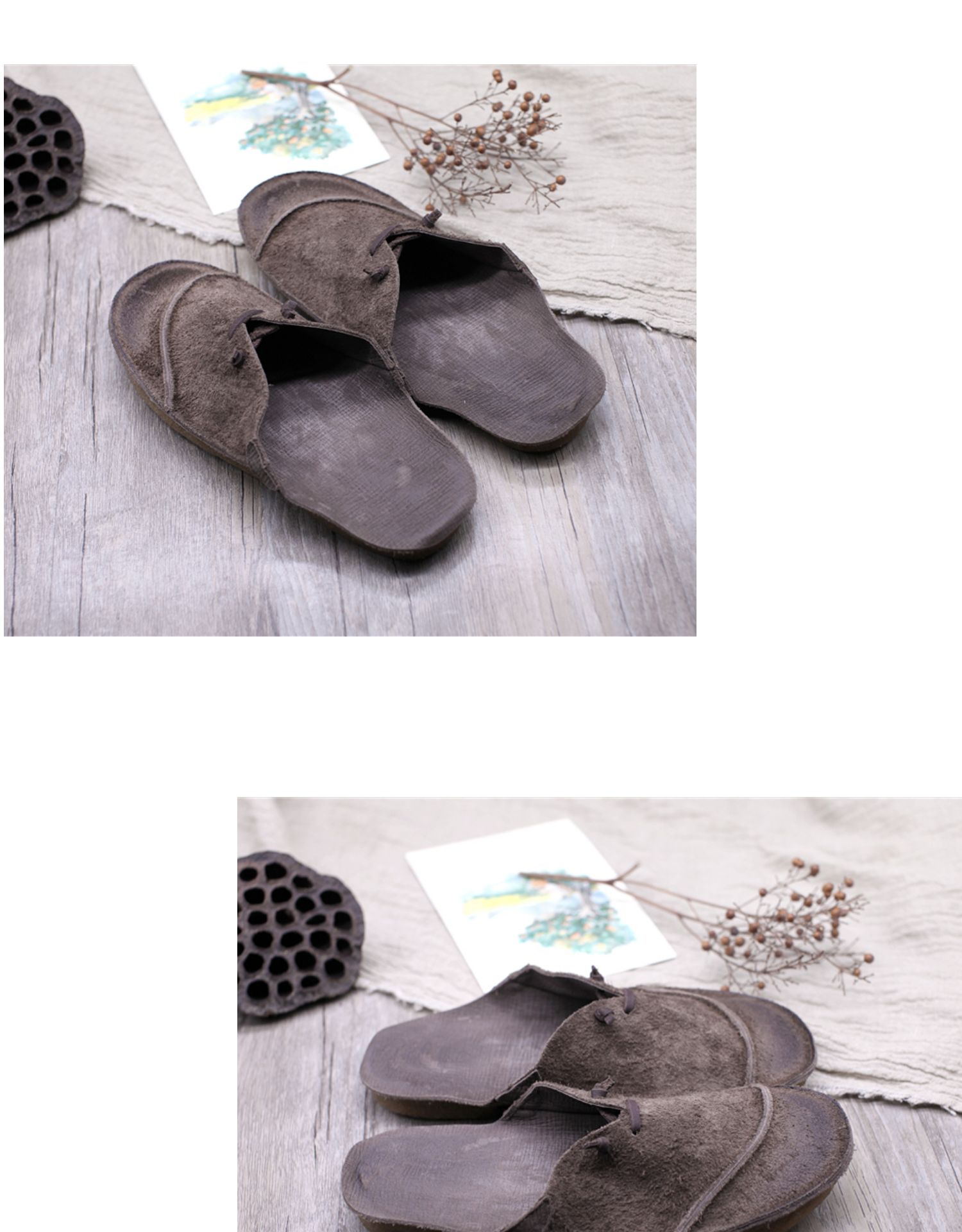 森系复古文艺做旧真皮舒适软皮轻便百搭外穿女休闲拖鞋