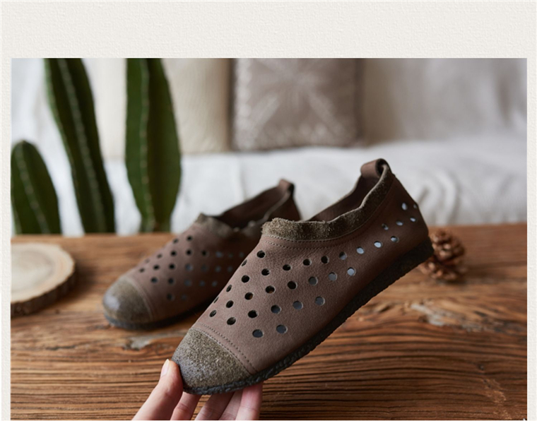 春夏新款学院风森系复古真皮透气舒适百搭一脚蹬软皮女