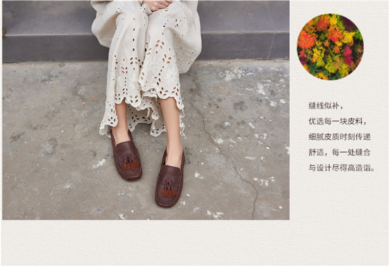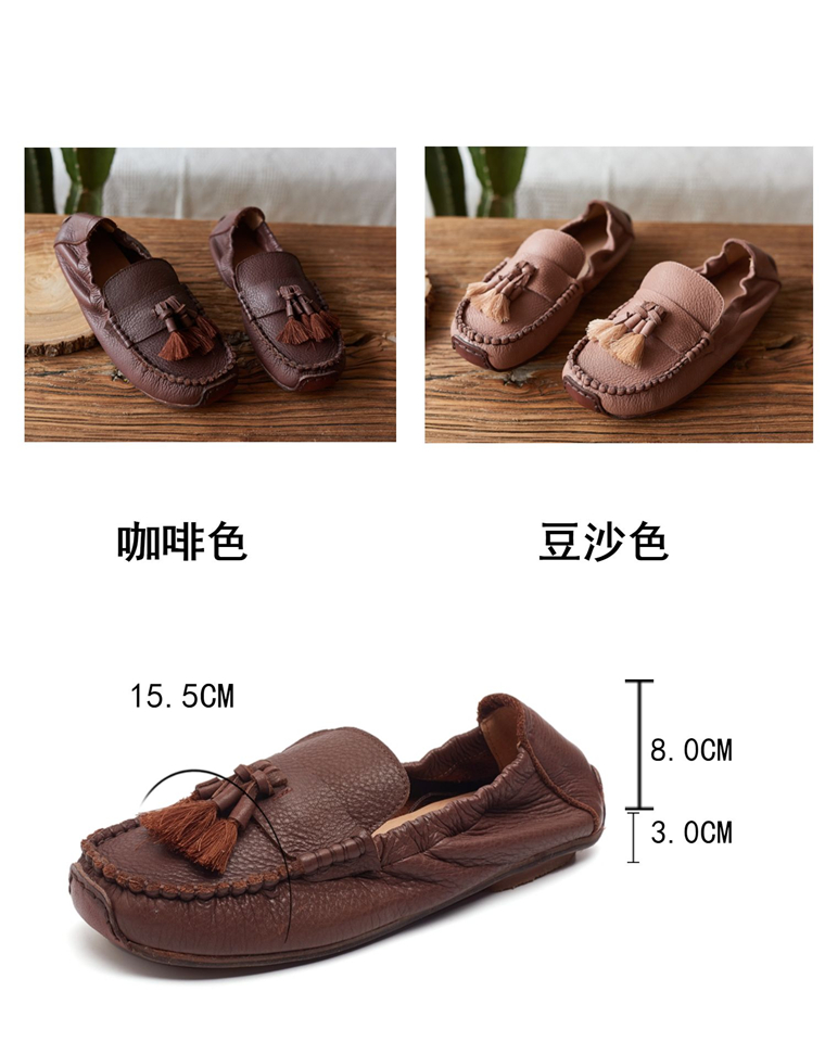 春夏韩版森系复古真皮流苏百搭软皮豆豆鞋一脚蹬懒人女单鞋
