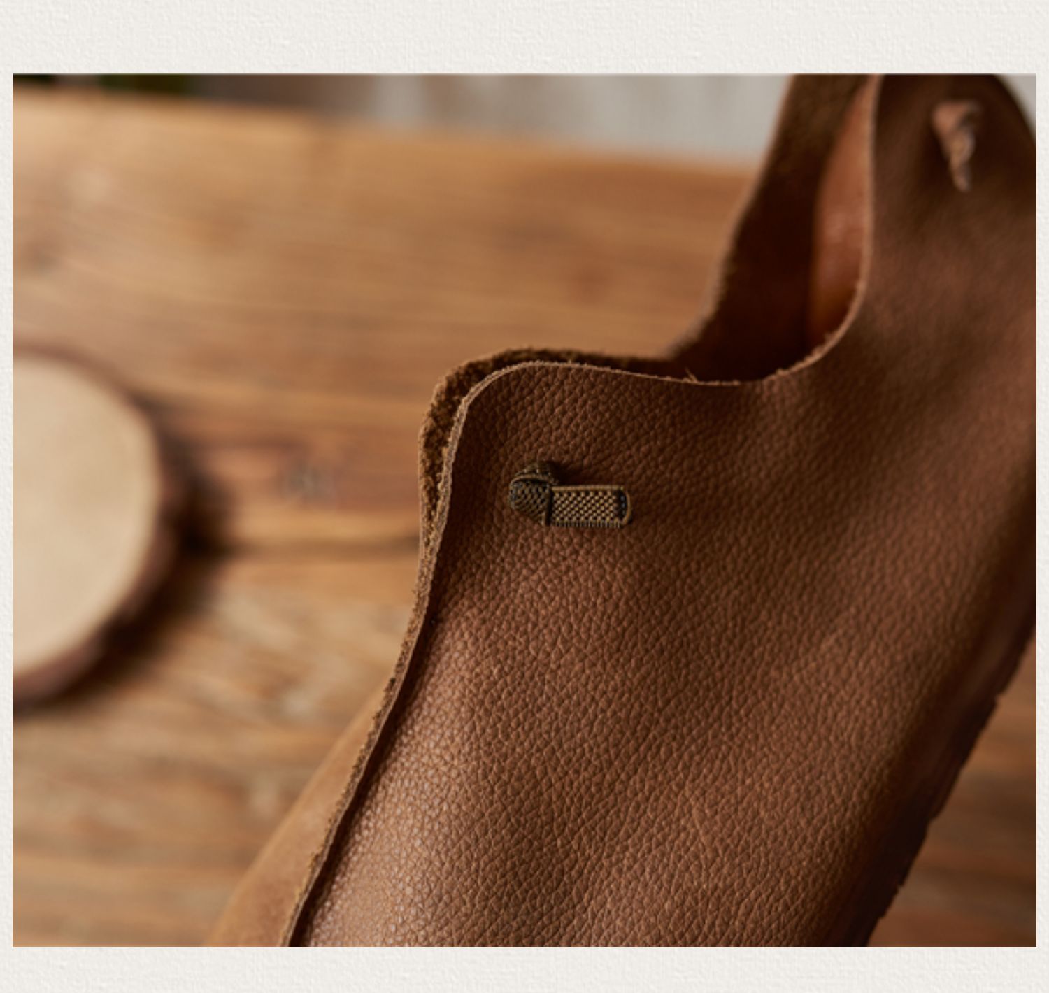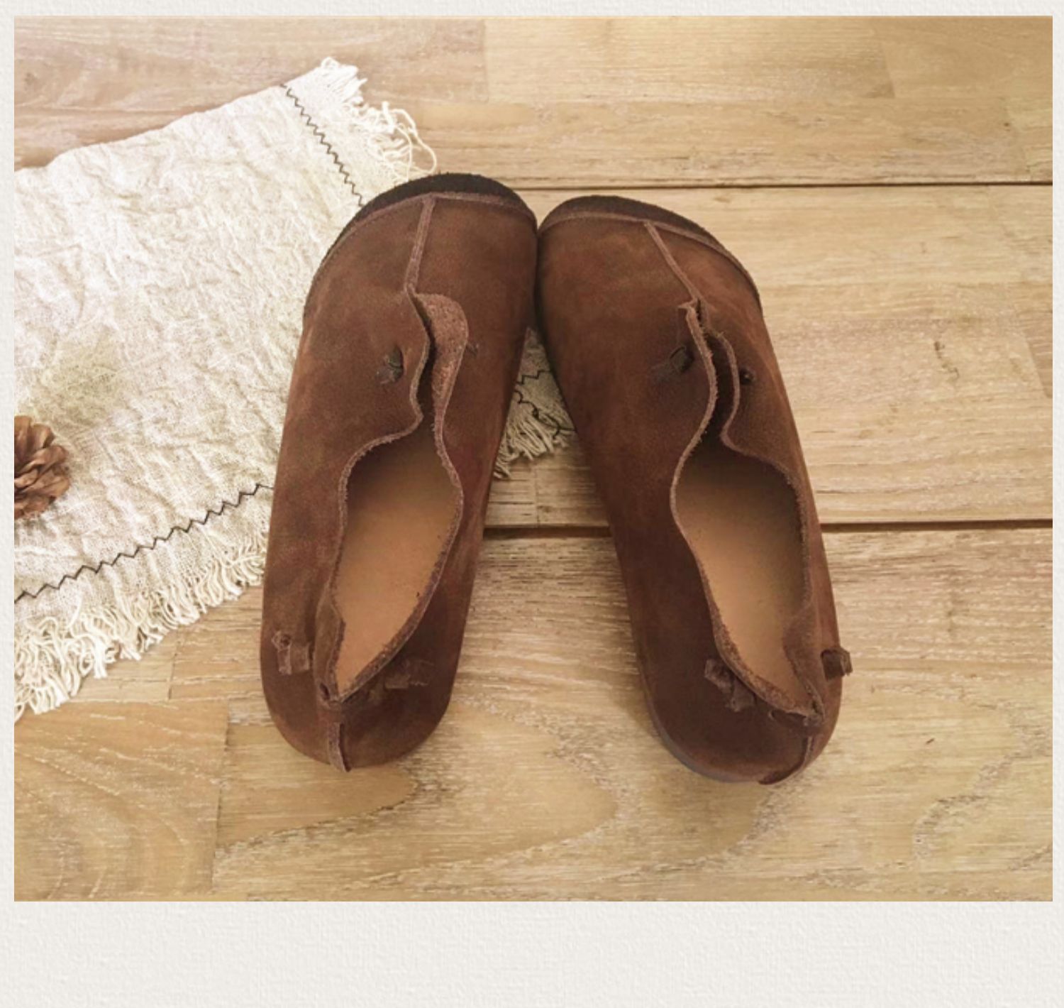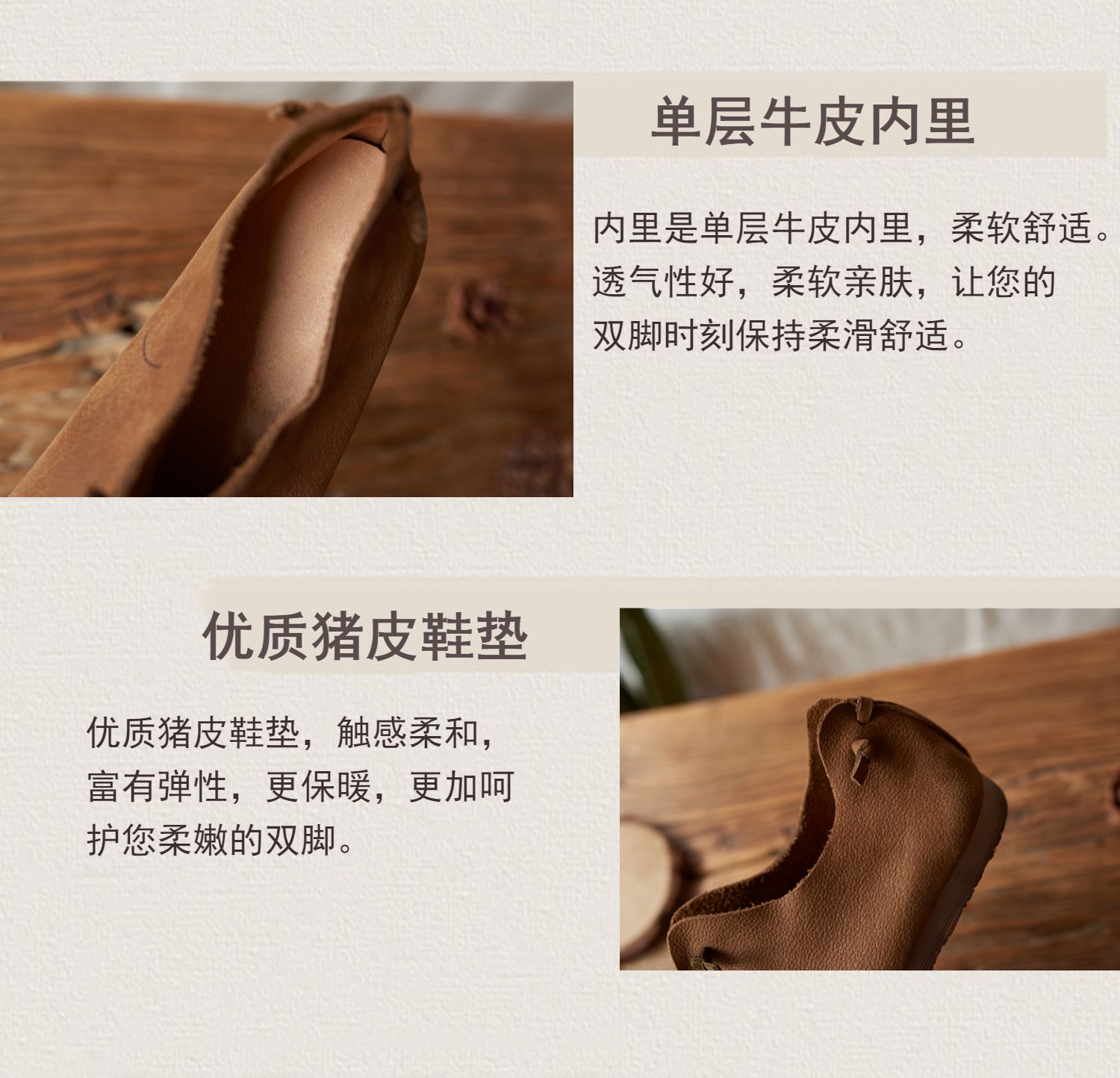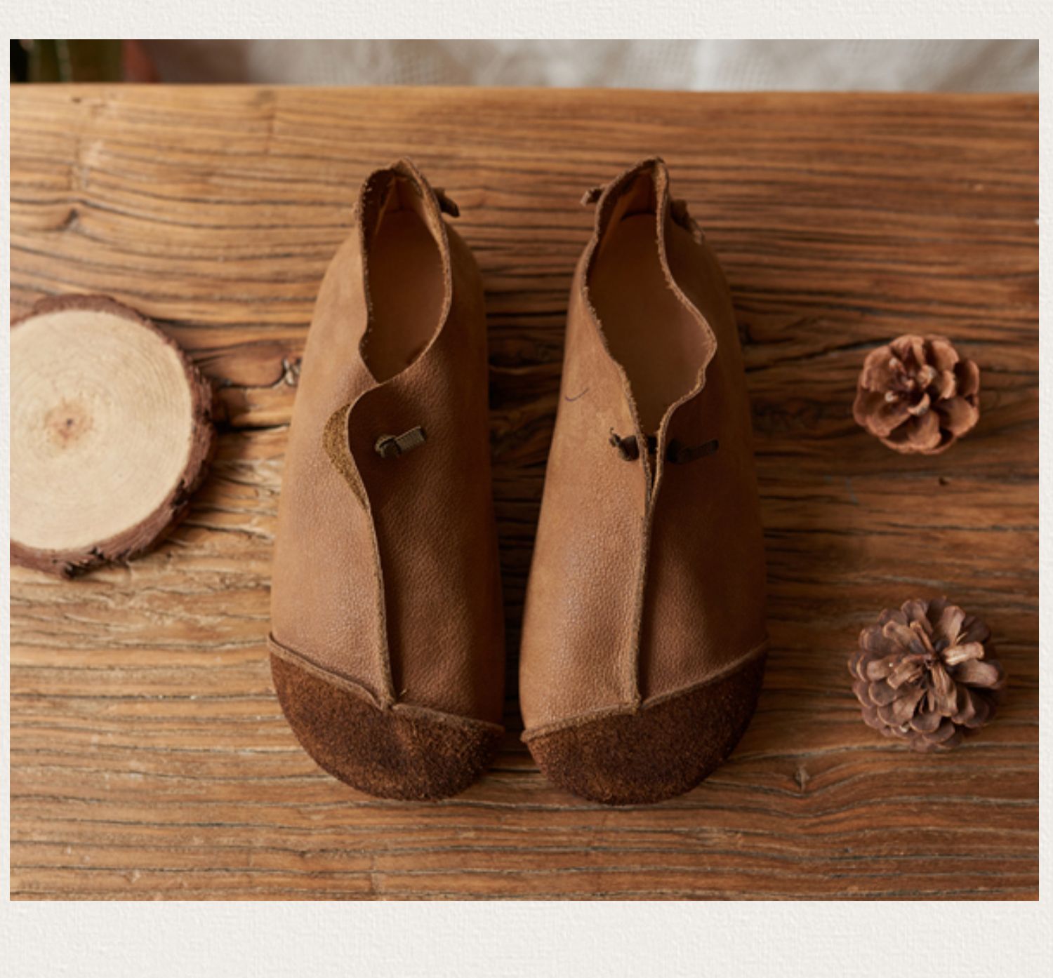 森系复古做旧真皮拼接擦色平底套脚舒适百搭女单鞋