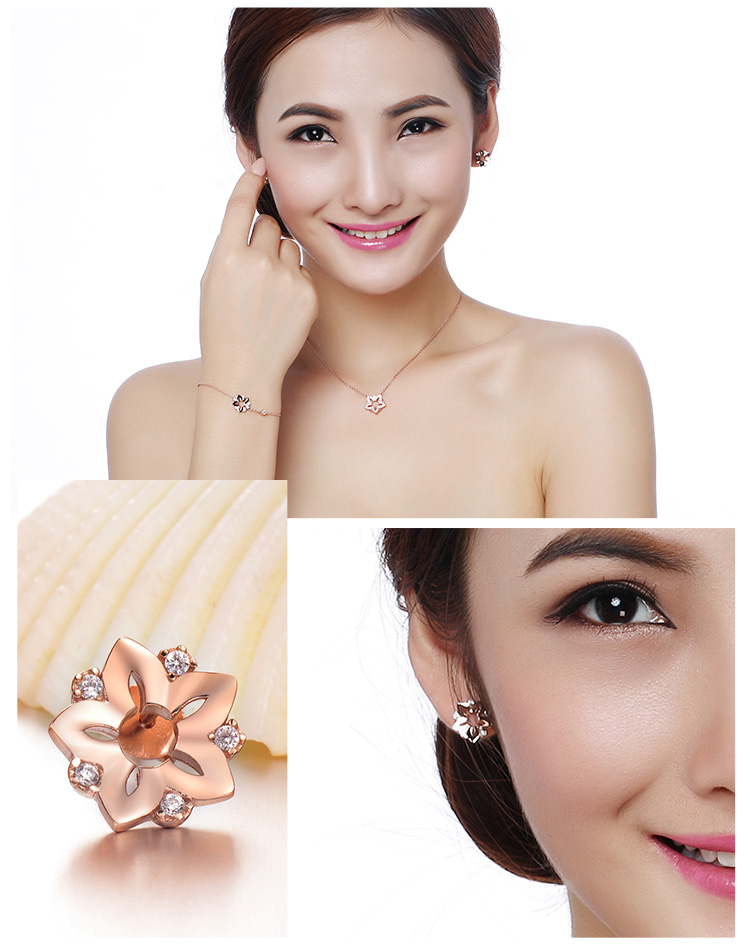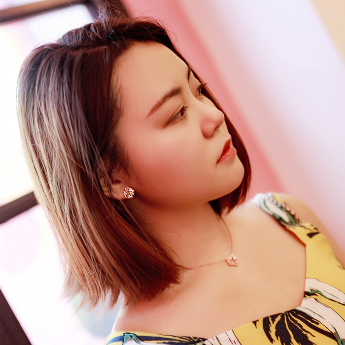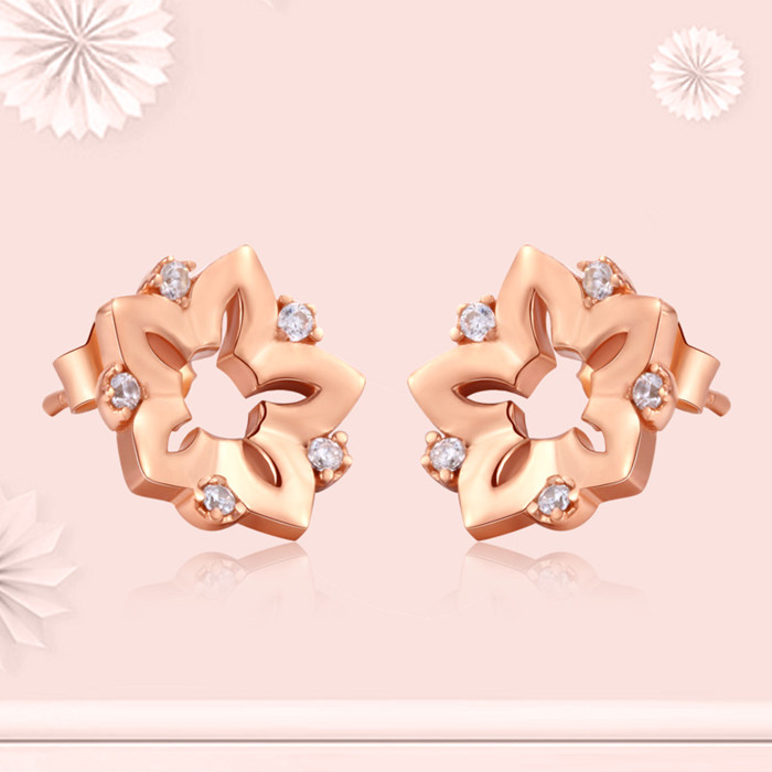 梅花心语雪花耳钉女纯银气质玫瑰金色韩国原创设计简约小清新