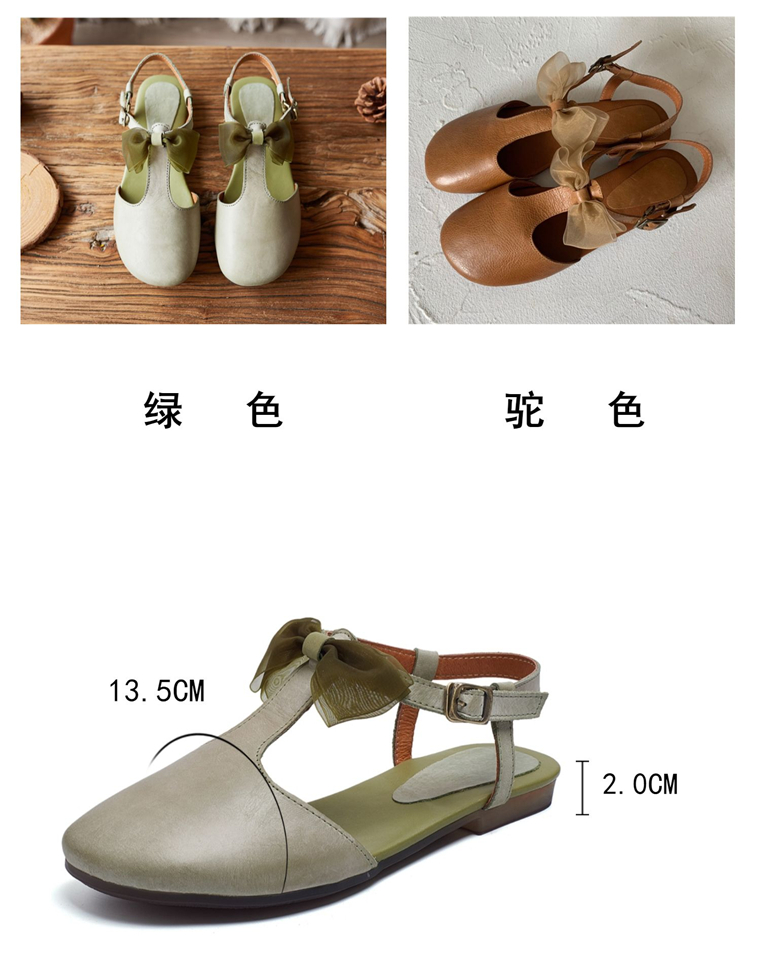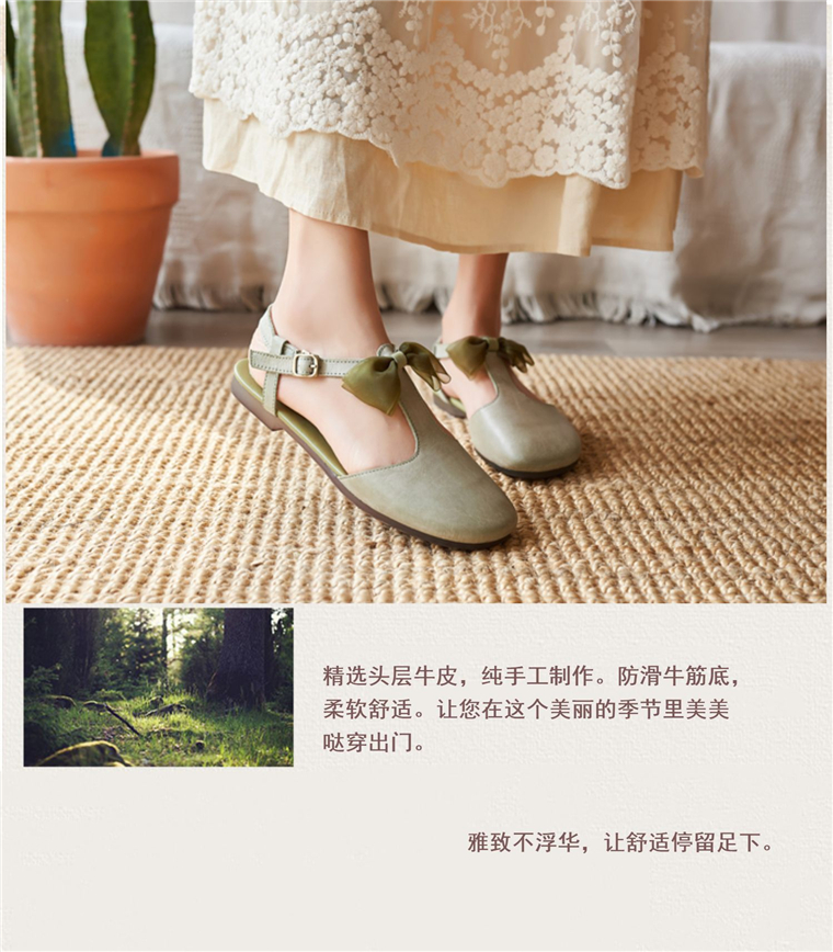 春夏韩版森系甜美包头蝴蝶结搭扣低跟百搭真皮丁字带半凉鞋