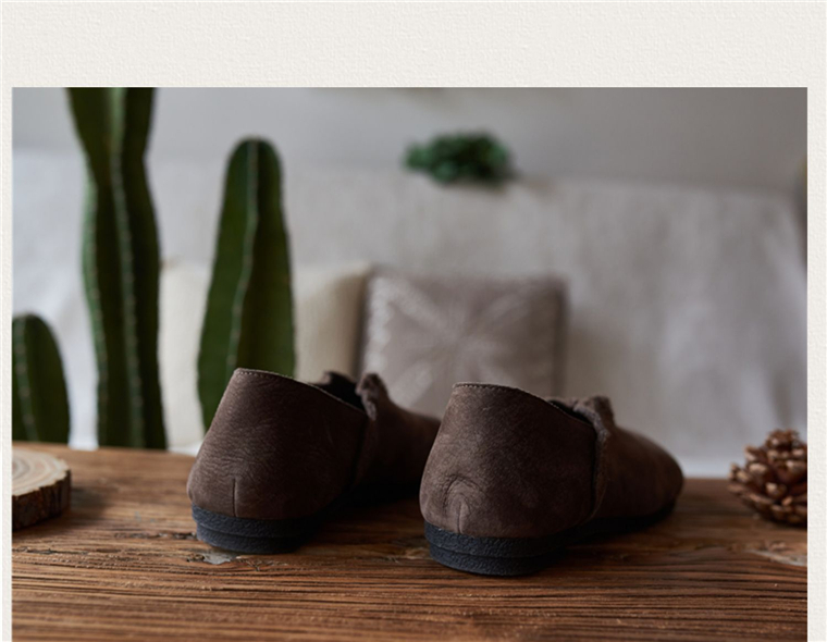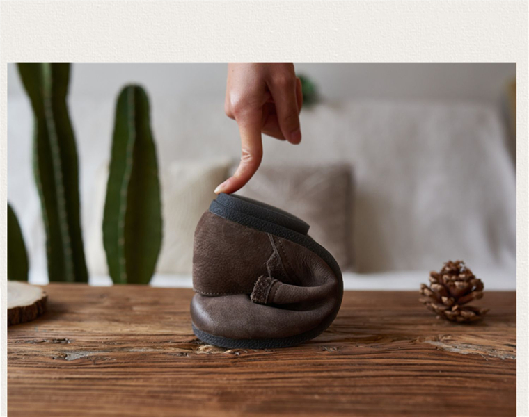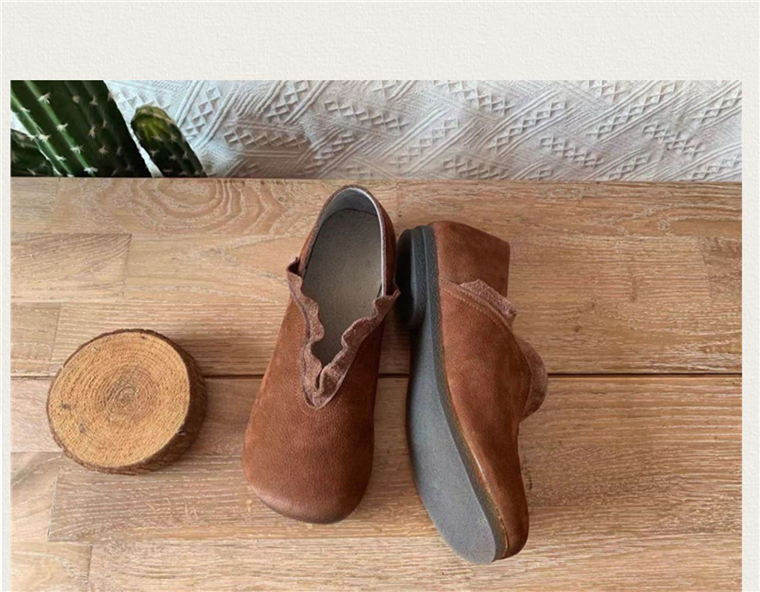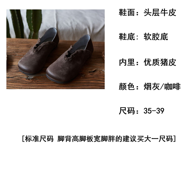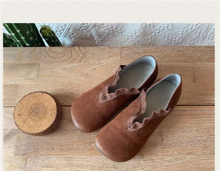 春森系复古真皮擦色皱褶花边大头套脚娃娃单鞋软底百搭单鞋