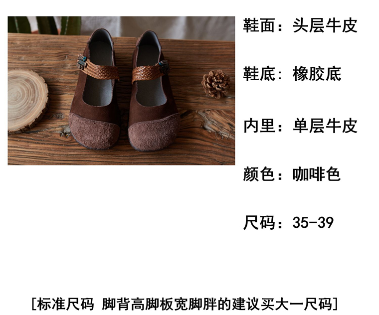 春夏森系复古真皮拼接编织魔术贴软皮舒适百搭平底女单鞋