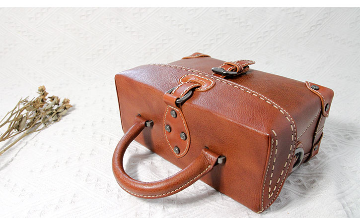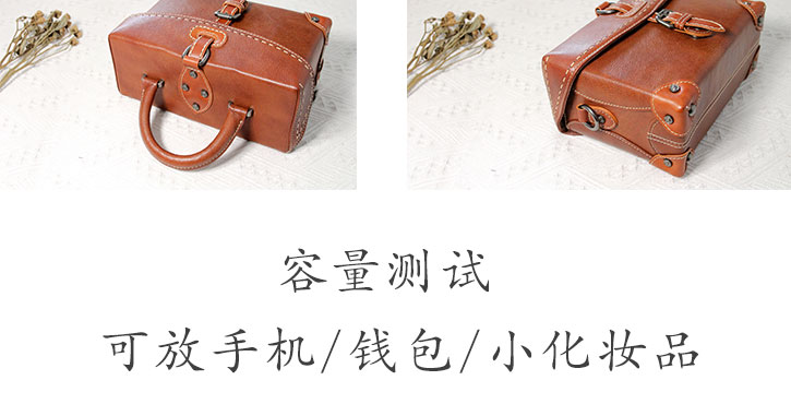 文艺女包复古小箱子手提包真皮定型斜跨包单肩小方包